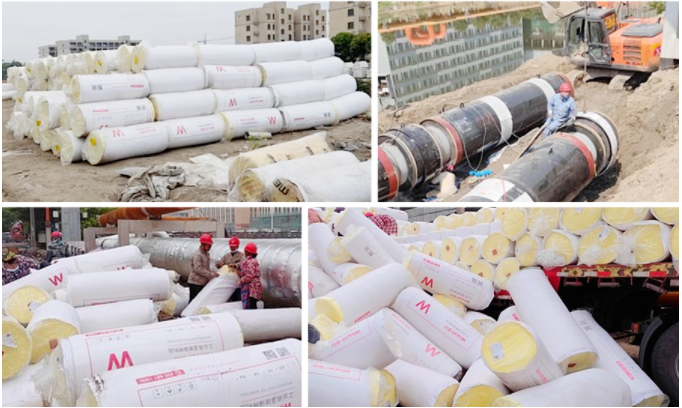 紹興濱海電廠熱網(wǎng)工程項目體量大,工期緊,高溫玻璃棉用量就超過1.5萬立方。