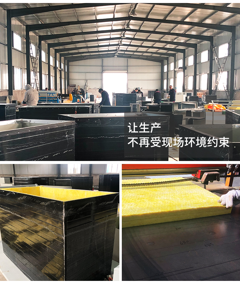特有的防腐抗菌噴涂彩鋼板,風管夾層為離心玻璃纖維板,大幅度提高室內(nèi)環(huán)境質(zhì)量。整個風管系統(tǒng)完全滿足GB8624-2012的防火要求,達到不燃A級。同時管道采用外插法蘭連接,使整個風管各部位保溫均勻,無冷橋現(xiàn)象產(chǎn)生,具有良好的保溫絕熱性能。